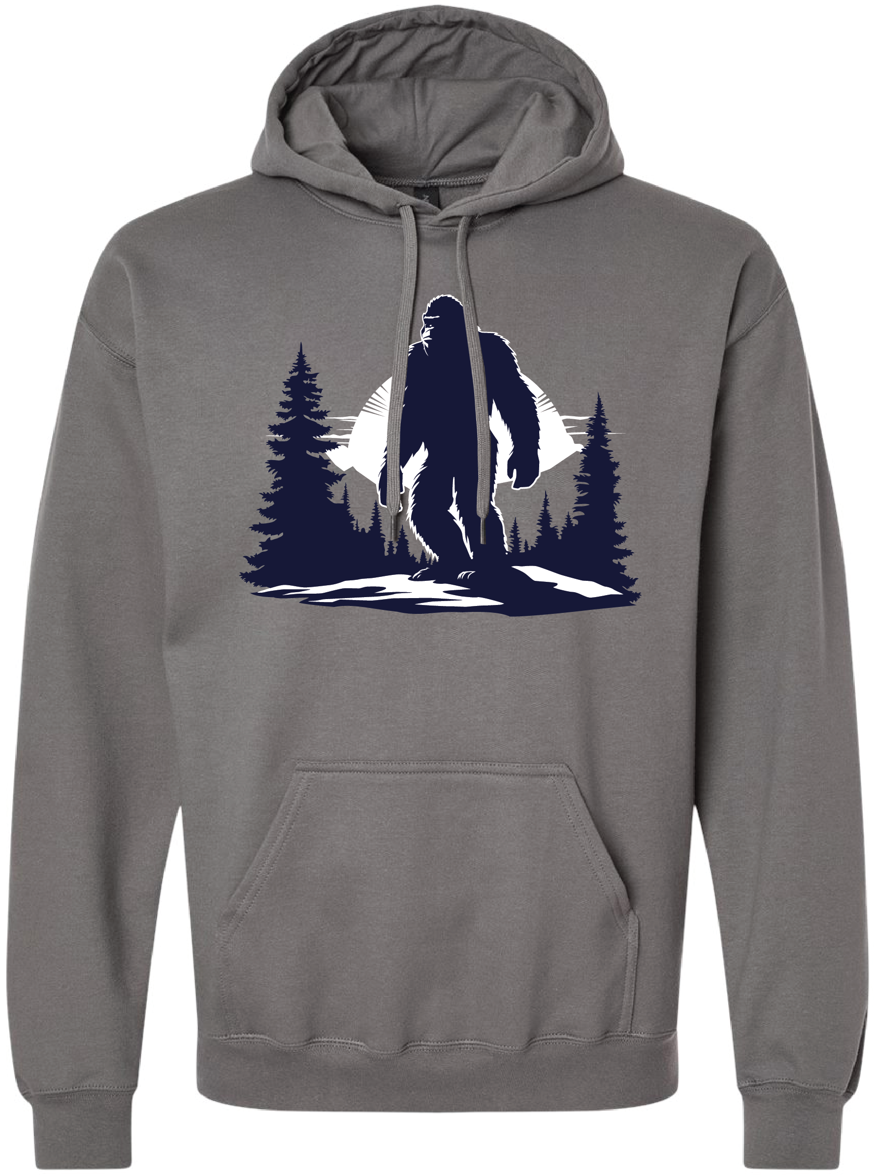 Charcoal Grey Gildan Hoodie with Mountain Top Sun Set design
