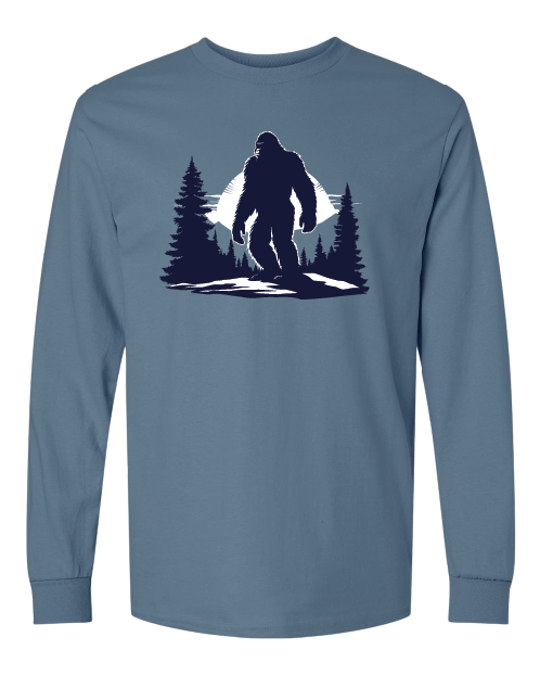 Indigo Blue Gildan Long Sleeve with Mountain Top Sun Set design