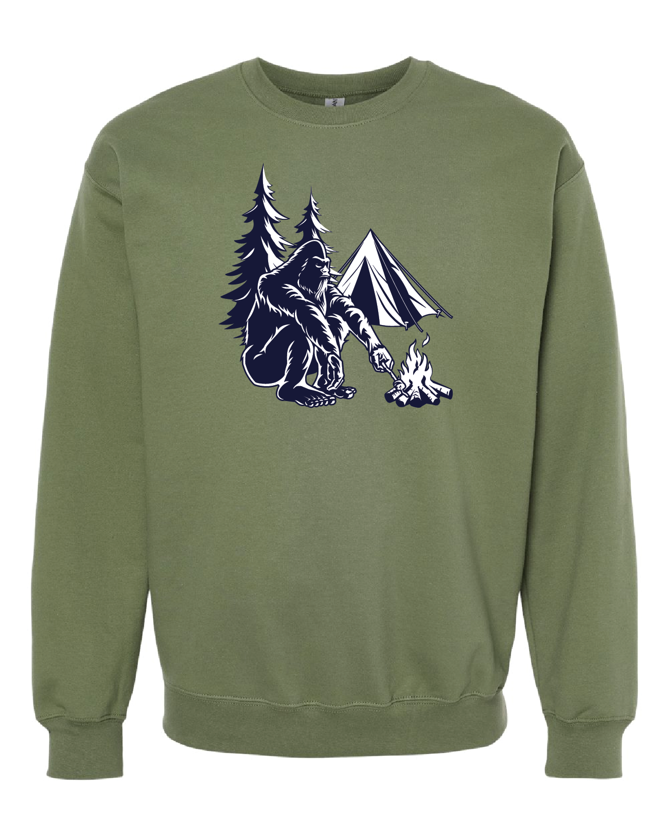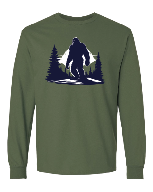 Army Green Gildan Long Sleeve with Mountain Top Sun Set design
