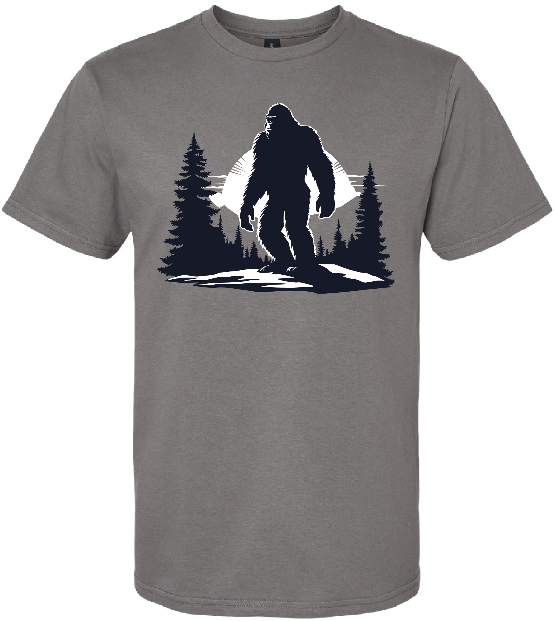 Charcoal Grey Gildan T-shirt with Mountain Top Sun Set design
